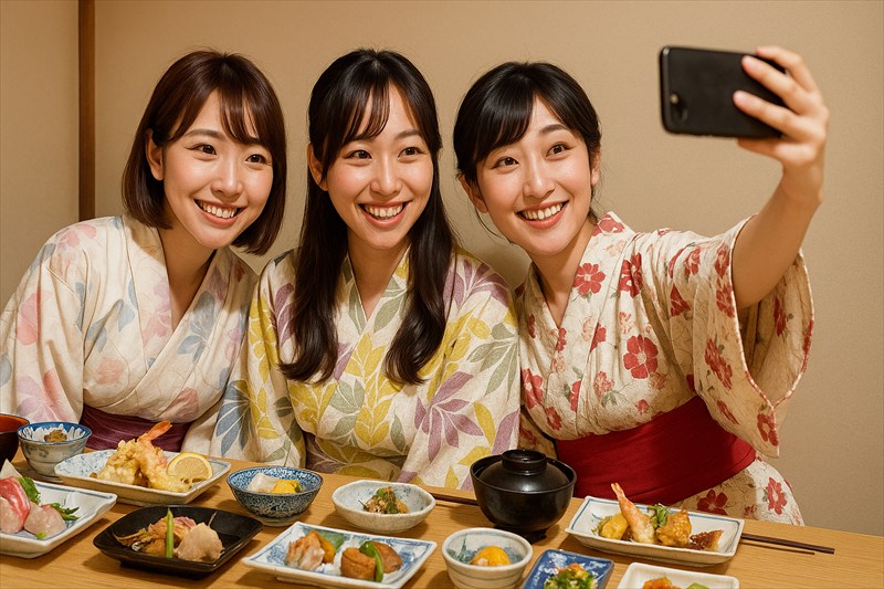 「#〇〇旅館の季節料理」などの専用ハッシュタグを設定し、